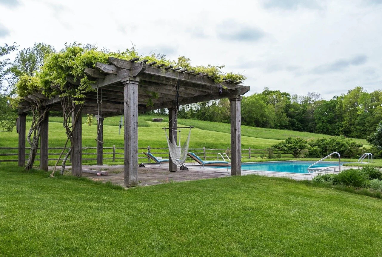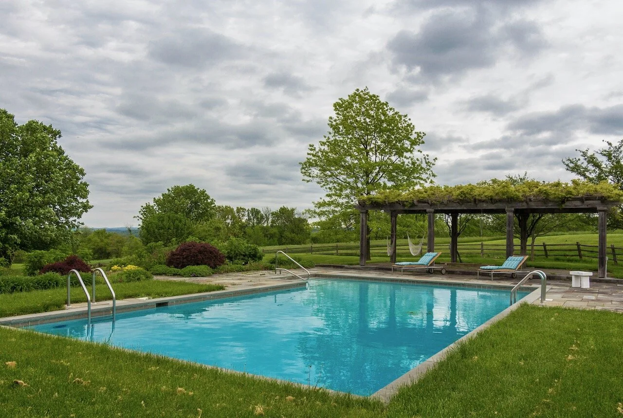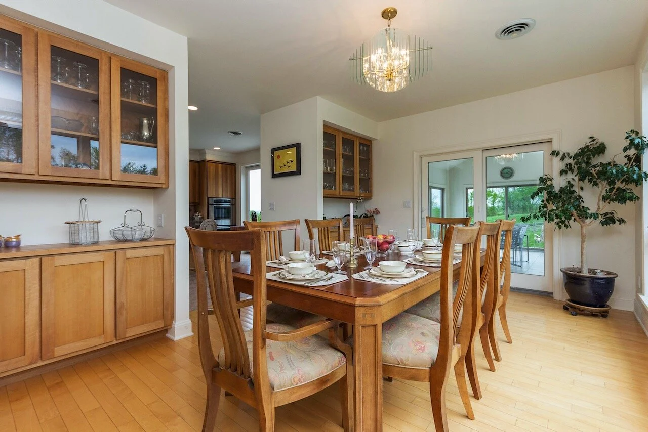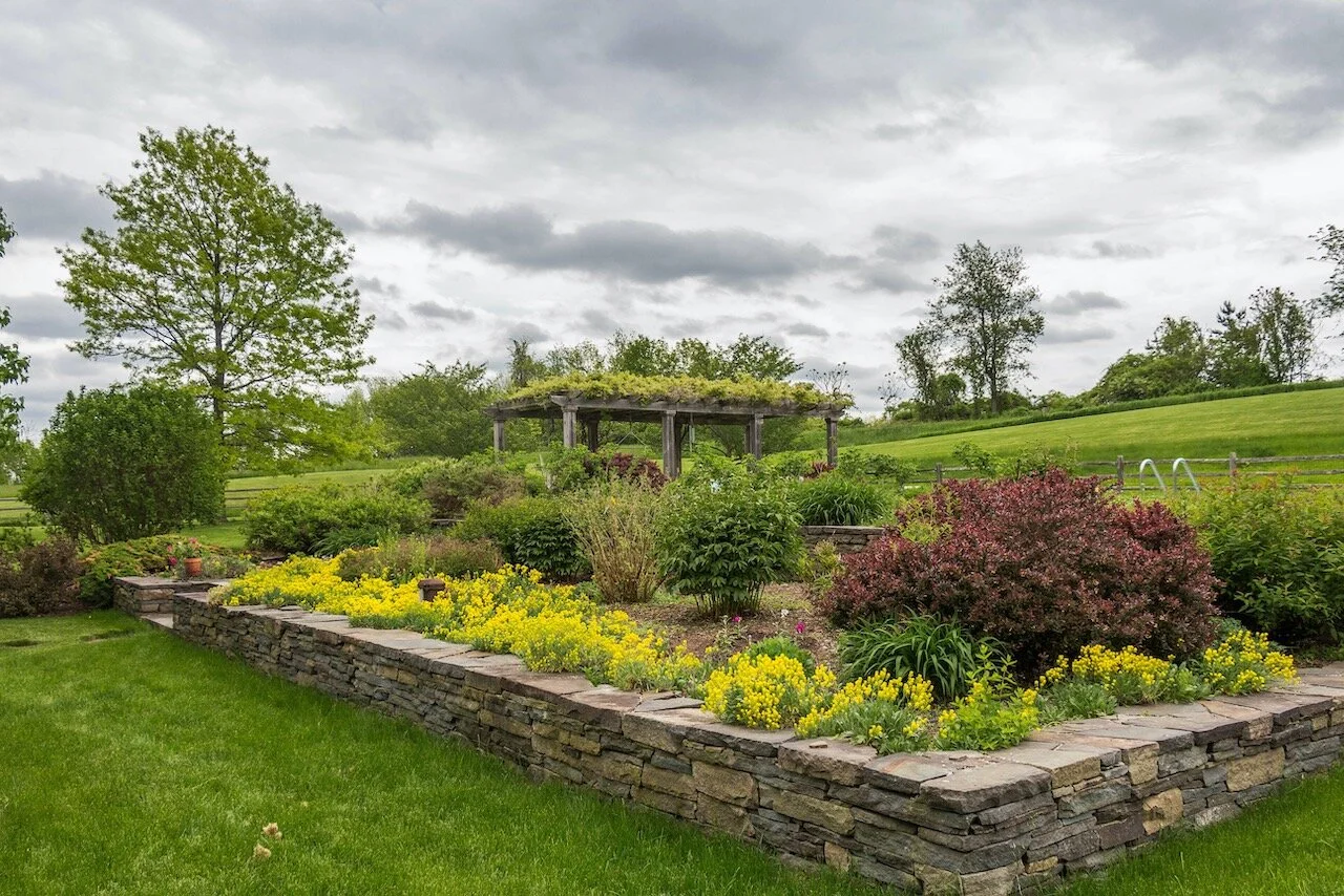 Details like a custom built wood and metal stair case, hand crafted black walnut cabinets and top quality appliances abound. Huge master bedroom suite with closets, a writing area and a spacious bath with a soaking tub and luxe shower. Stone patios, terraces and exquisite landscaping surround the home with many areas to dine alfresco during summer and fall evenings. A gunite pool, a pergola covered with flowering summer vines, and colorful bushes and plantings make for a delightful landscape around the house.