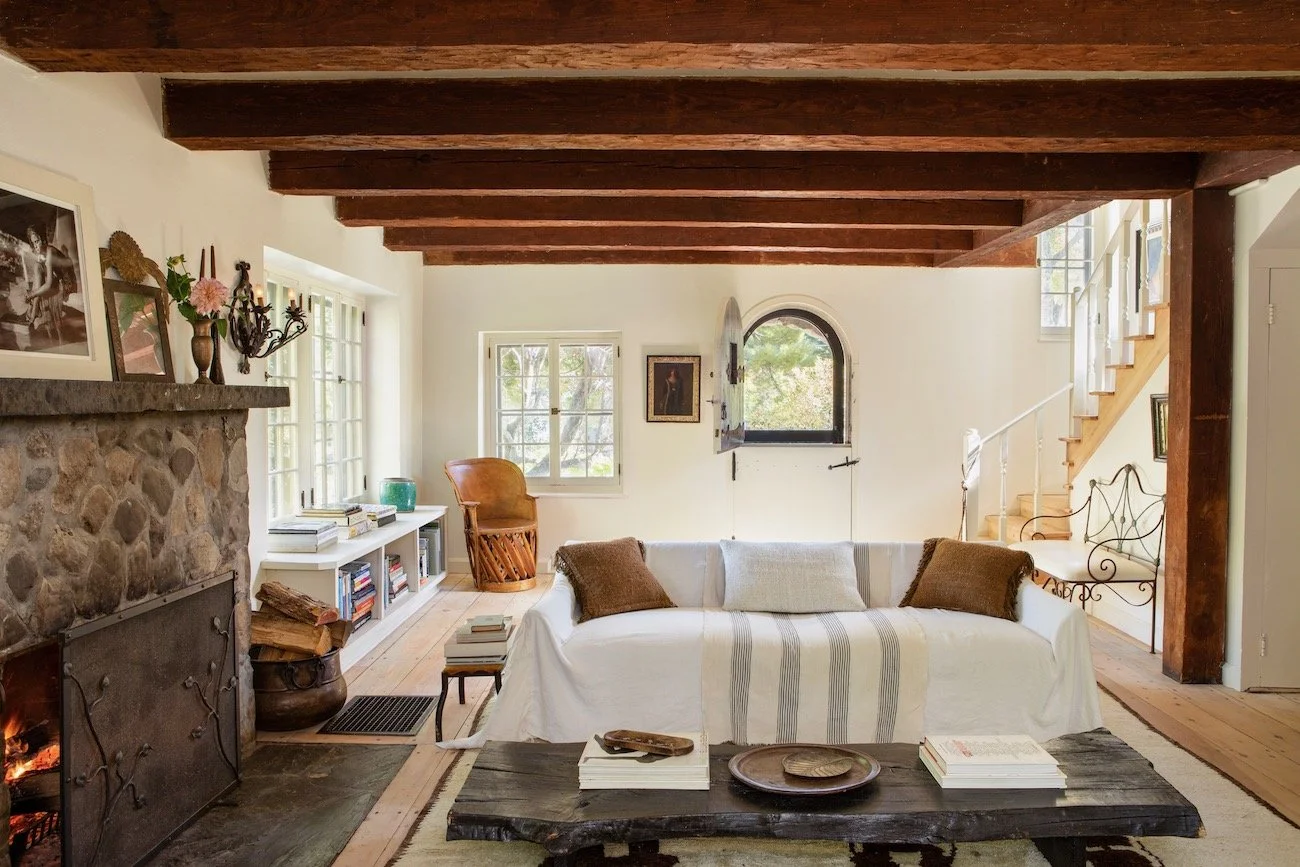Library Lane is a circa 1925 compound on a quiet road in the heart of Woodstock with an impeccably designed stone house and a Vervoordt-inspired guest cottage.