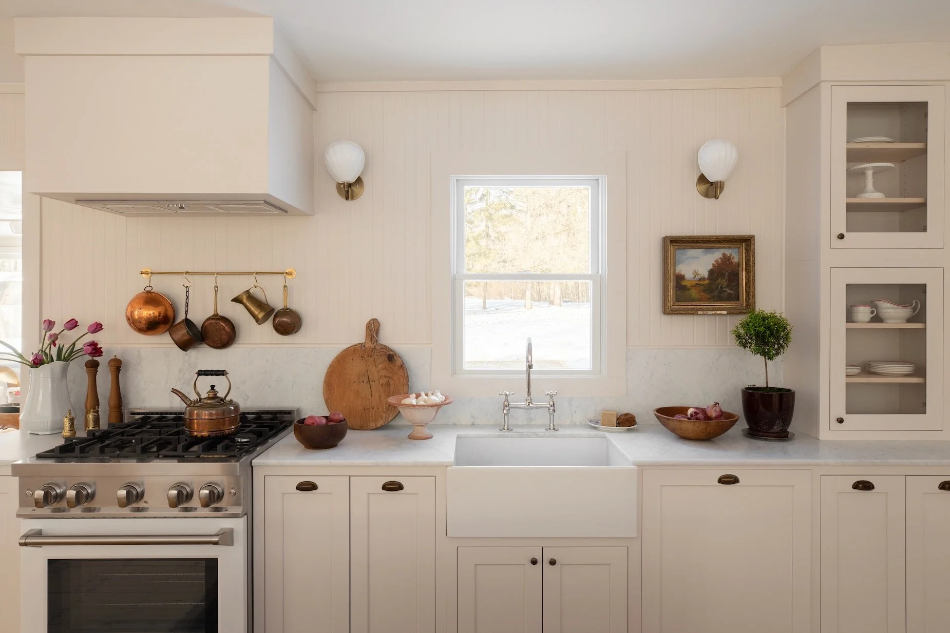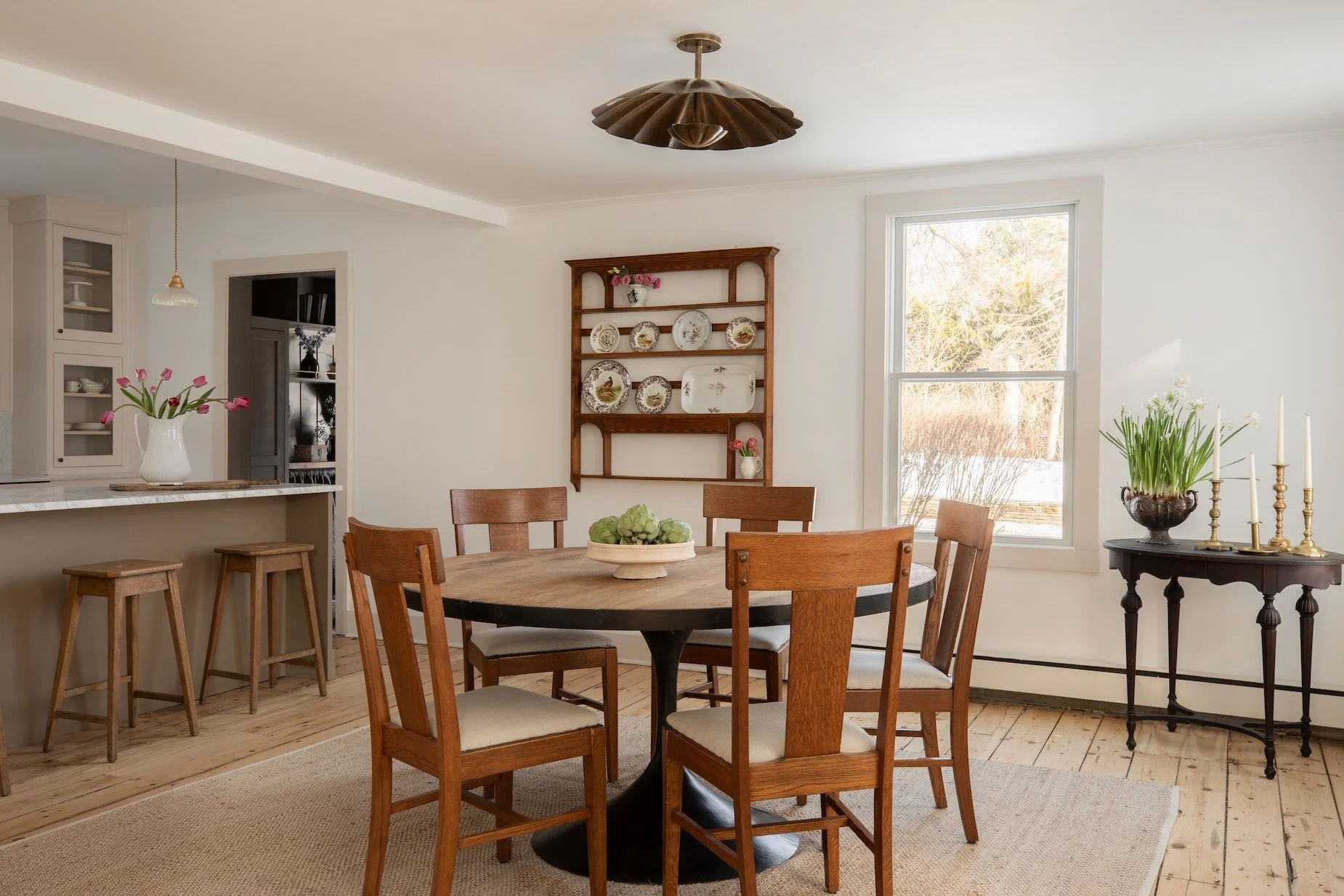 Abundant in natural light and overflowing with character, the home’s original floors have been carefully restored and reflect just enough of their nearly 200 years of earned patina, thoughtfully collected slabs of marble have been used for the kitchen countertops and checkered mudroom floors, and extensive trim and millwork have been repaired and added throughout.