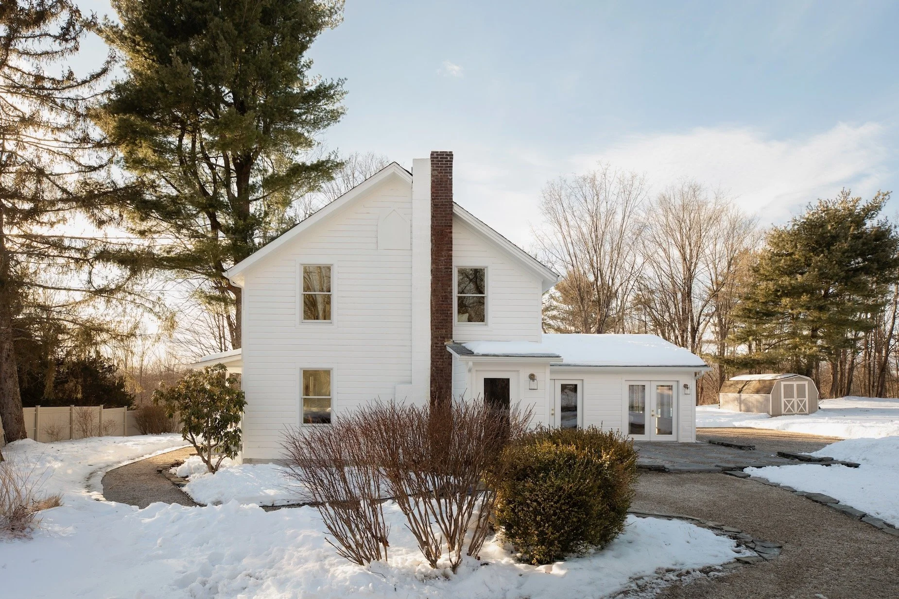 The ground floor offers two distinct living spaces: a cozy family room tucked away in the home's original footprint, and a tasteful addition towards the back of the house featuring a wood burning stove, picture windows overlooking the property’s bucolic acreage, and a built-in breakfast nook. The expansive, custom kitchen with extensive storage and top-of-the-line appliances, dining room, mudroom, laundry/utility space, and powder room complete the first floor.
