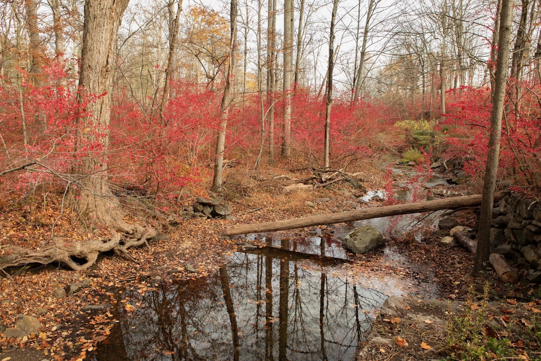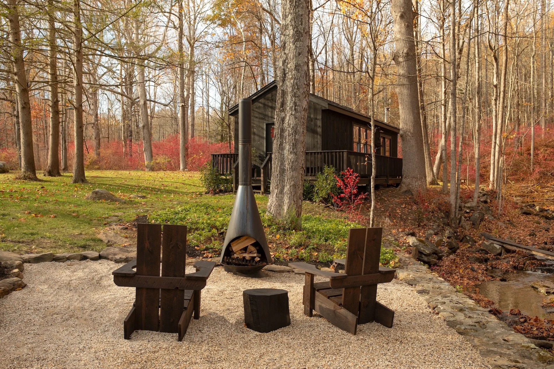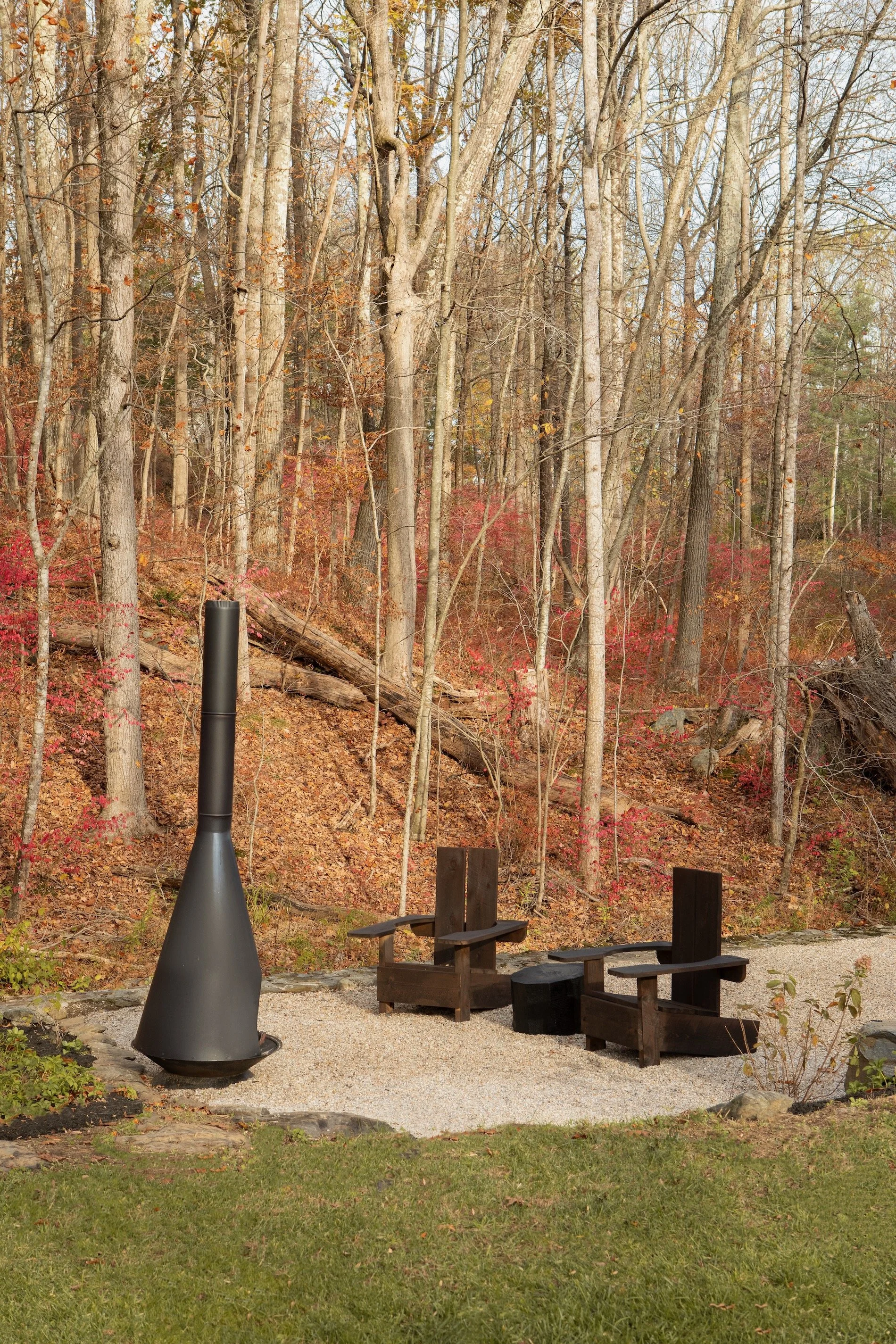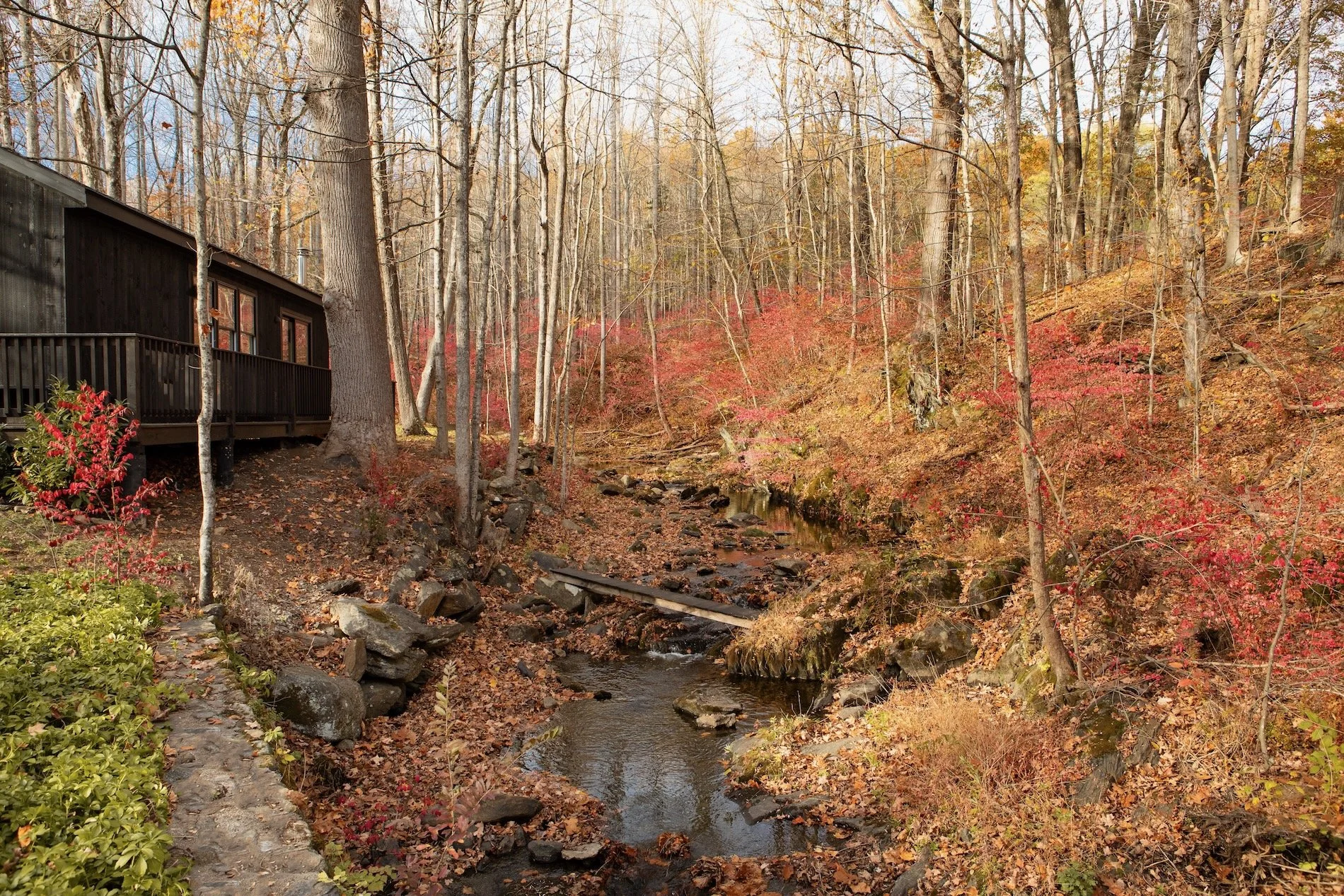 Every inch of the 1.5-acre grounds has been cultivated for all-season enjoyment. The large back deck borders the stream, and its steps lead down to a pea-gravel fire pit area set within the extended stone foundation of the former gristmill. From there, the property stretches out to an extensive lawn, peppered with ancient trees, stone walls, and flowering bushes. A small walking trail leads you to the kitchen garden, with multiple wood-framed garden beds. Another lookout behind the studio and along the brook offers a perfect vantage point for the surrounding landscape. The stream, which follows the property's boundary, has multiple shallow pools for cooling off during the hot summer months.