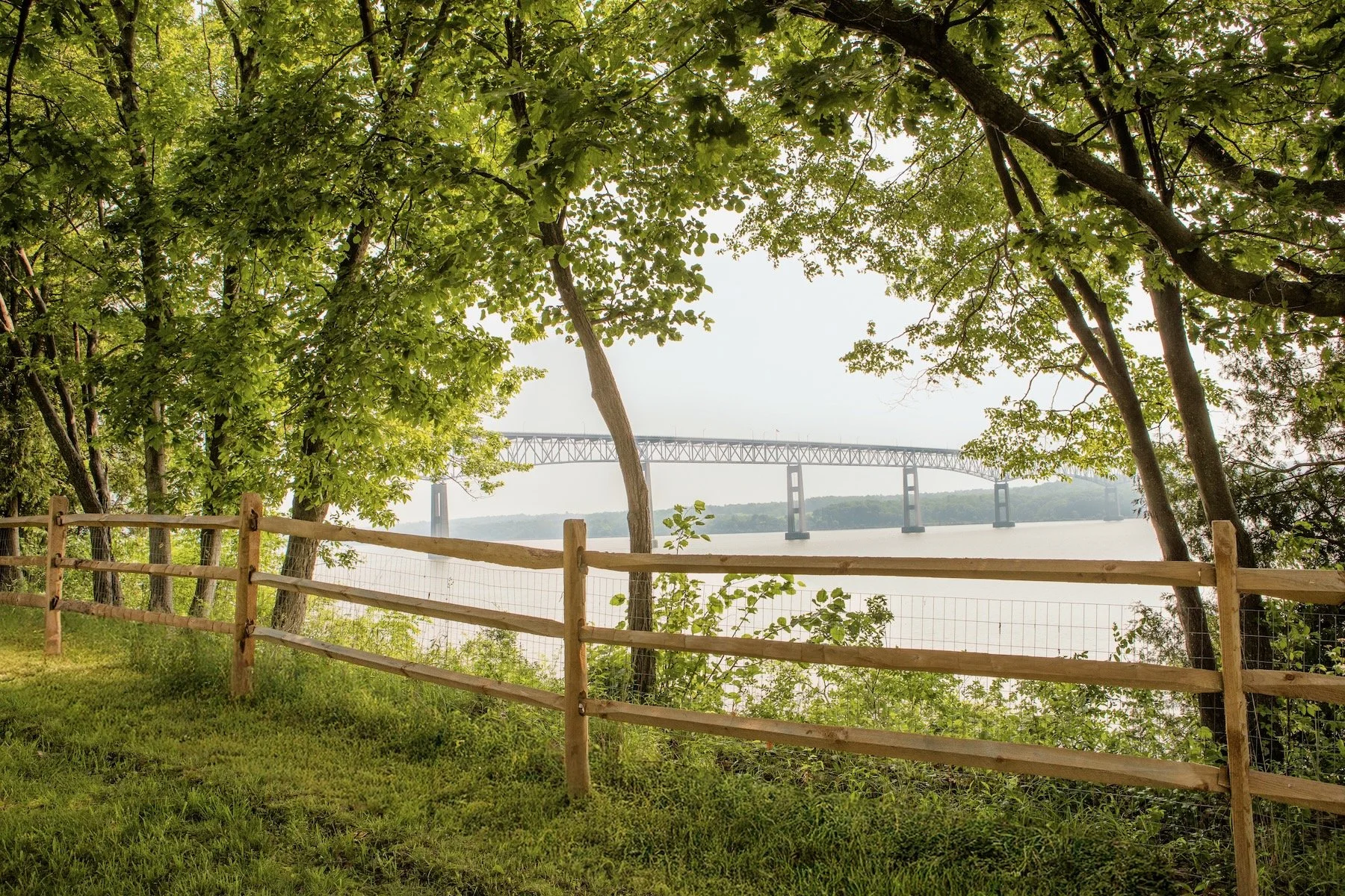 Ulster Landing, with its 34+ acres, possesses a particularly dynamic landscape, with several rolling wildflower meadows, centuries-old flowering trees, winding walking trails, and a pebble beach along the Hudson River.